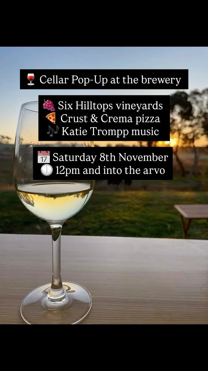 Saturday 8th - CELLAR POP UP! Crust & Crema Woodfired Pizza & Katie Trompp live music