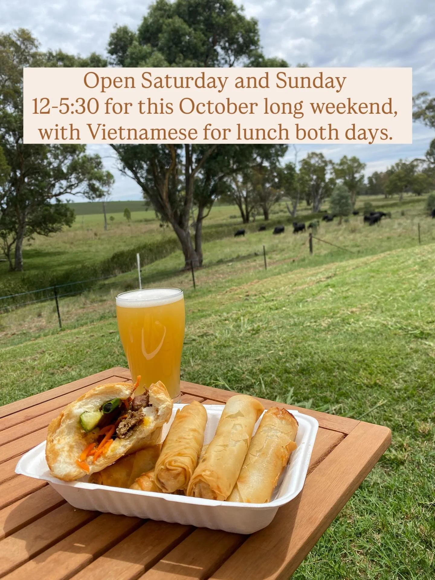 Weโre open every Saturday from midday to 5.30pm, as well as occasional Sundays. We have rotating food trucks serving lunch on Saturdays, and platter items available to enjoy with a drink.