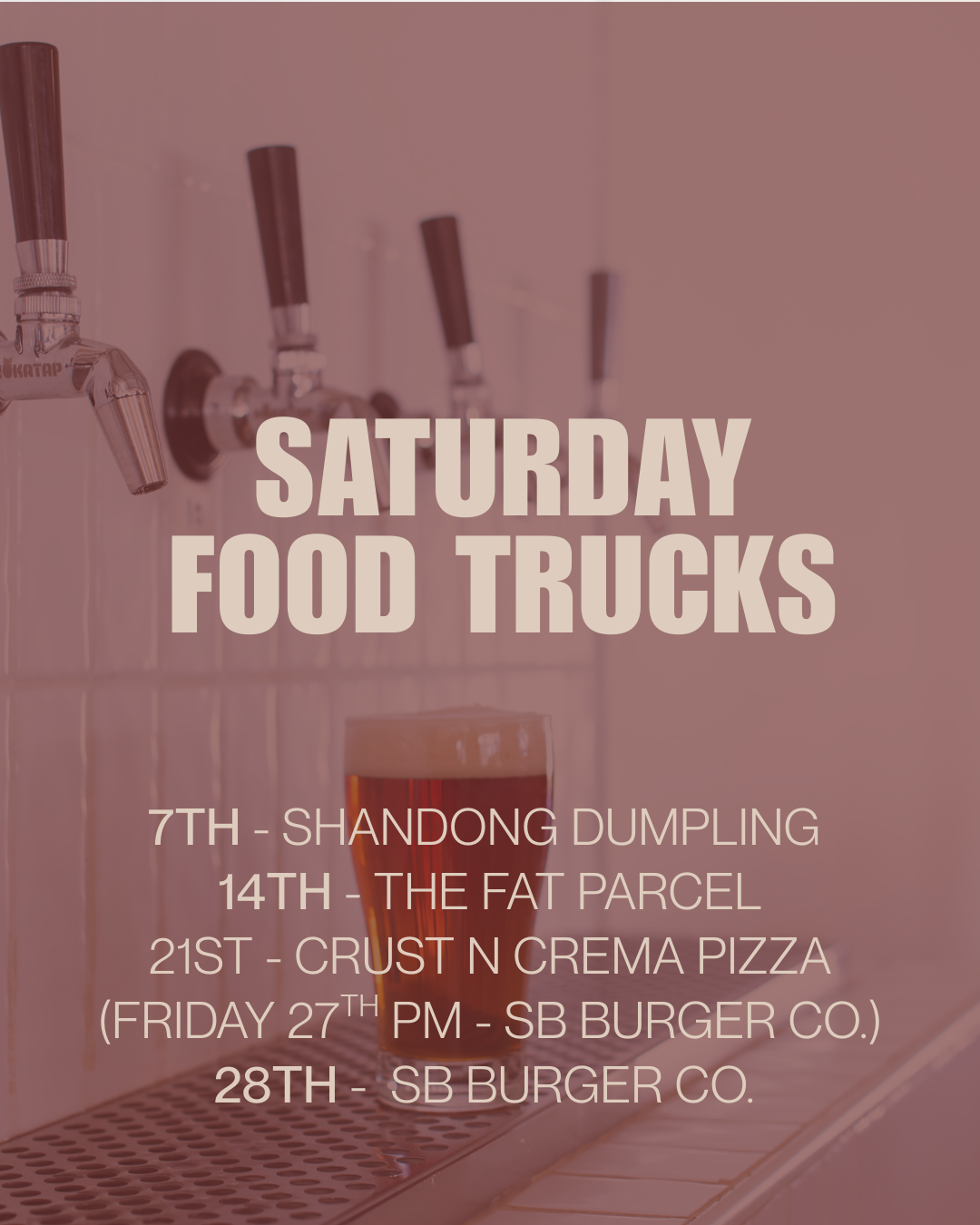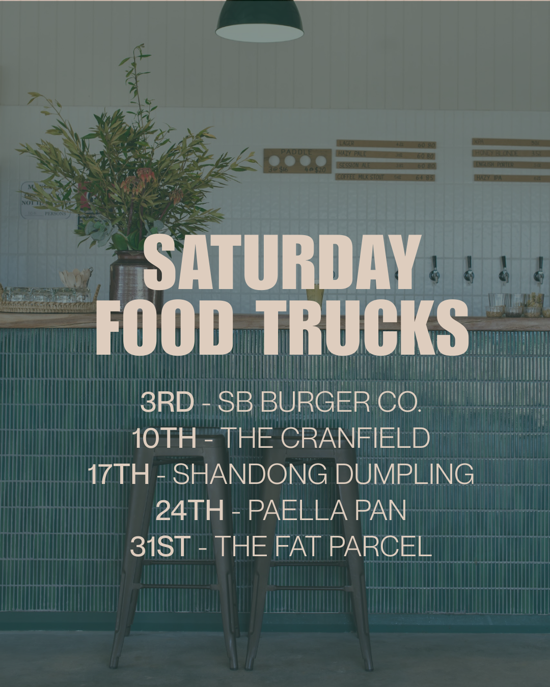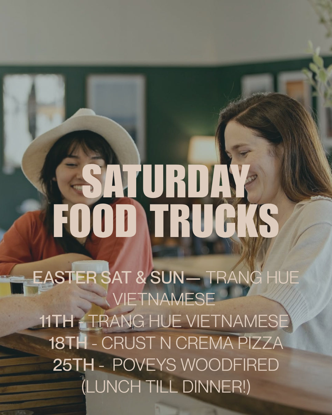 Different food trucks every Saturday serving lunch 12 - 2:30pm, sometimes longer.